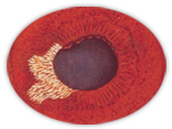 眼压升高。正常的眼压范围应该为10-21毫米汞柱,当大家用手指触按眼球的时候,它是很有弹性的,如果当眼压上升到25-40毫米汞柱的时候,用手指按眼球的时候,好像是打足气的球一样。上升到40-70毫米汞柱的时候,用手指按的时候,就会硬的像石头一样。